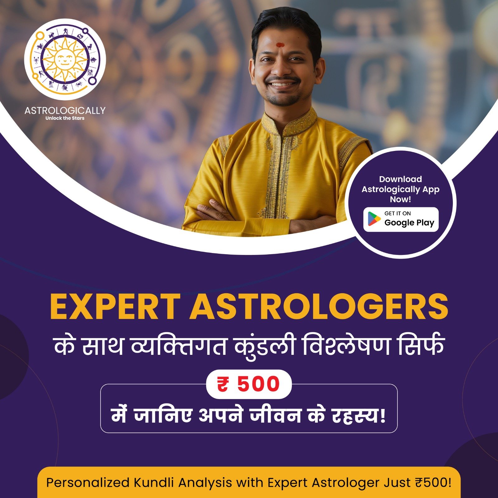 Transform your life with the power of astrology. Don’t miss this opportunity to understand your past, present, and future for just ₹500.